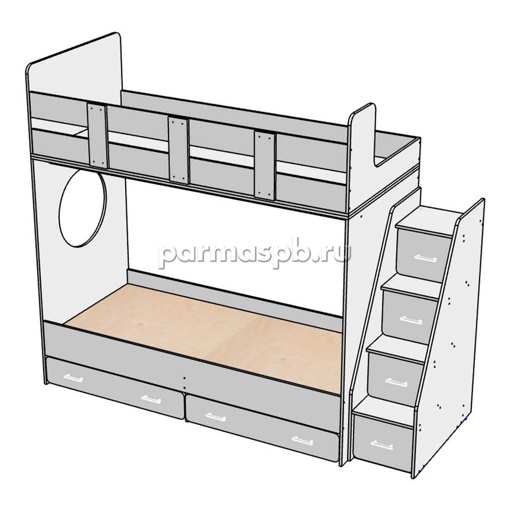 4. Кровать детская двухъярусная с лестницей ящиками