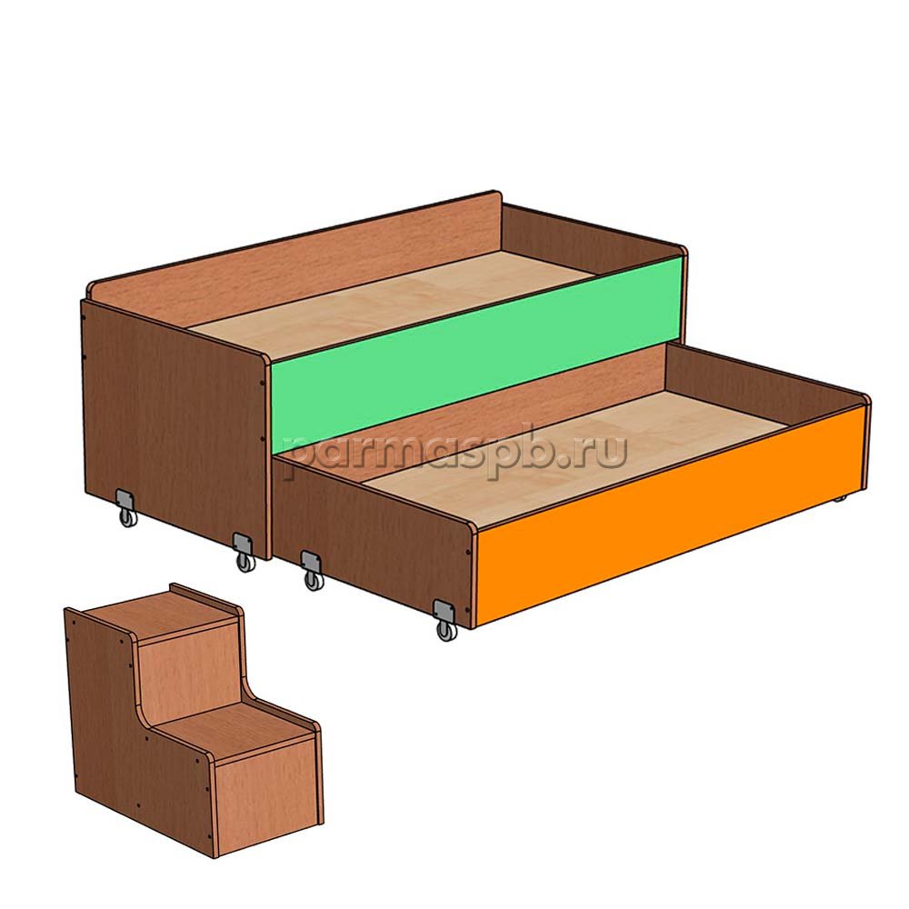 Кровать детская двухъярусная с отдельными ступеньками